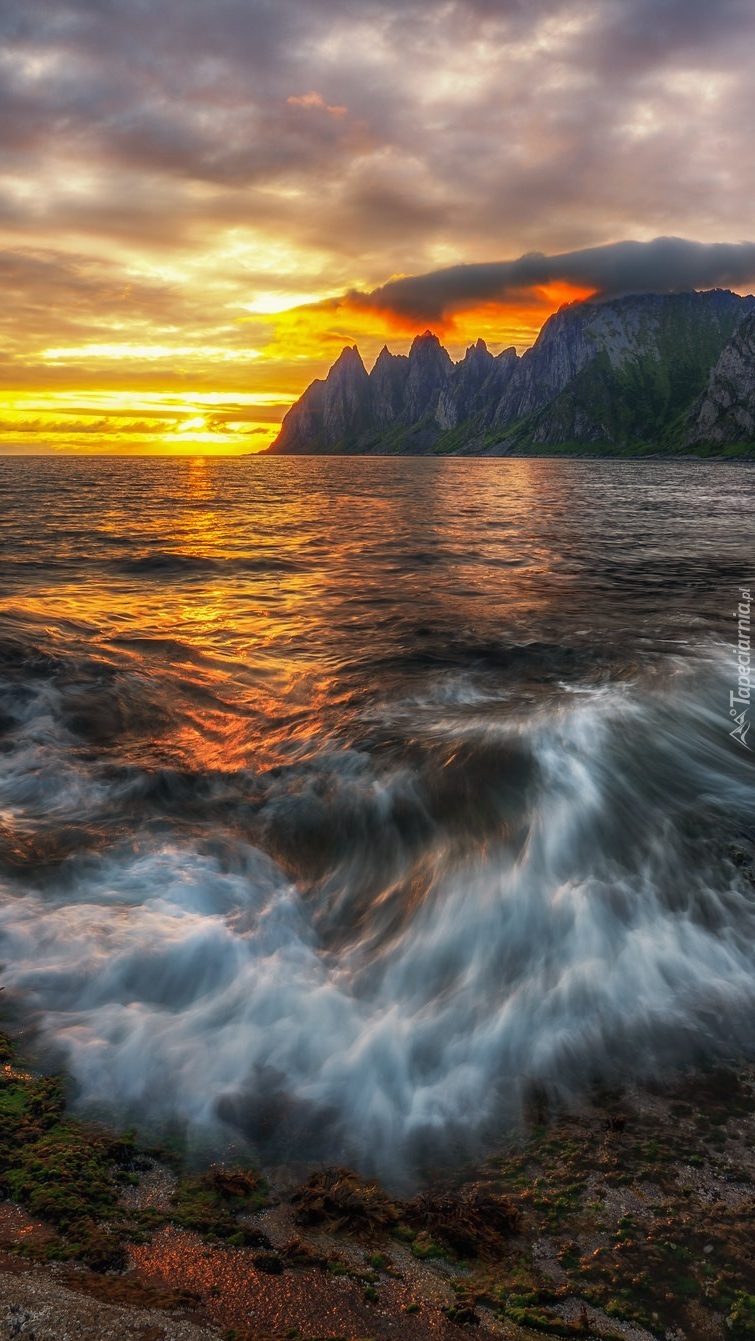 Edytor tapety: Morze i góry o zachodzie słońca