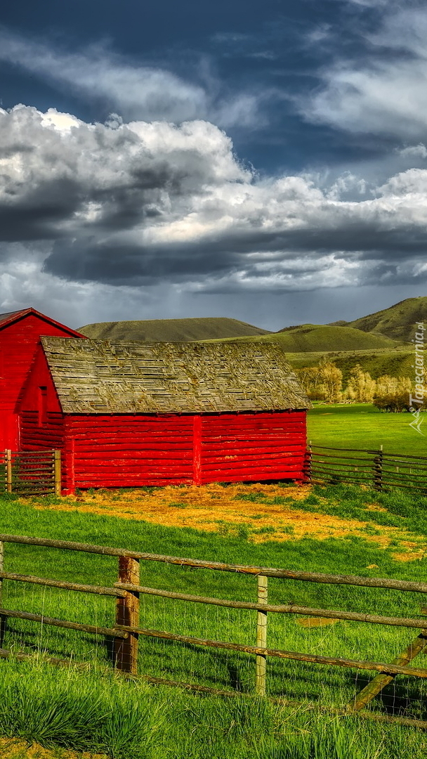 Edytor tapety: Czerwona stodoła na polu