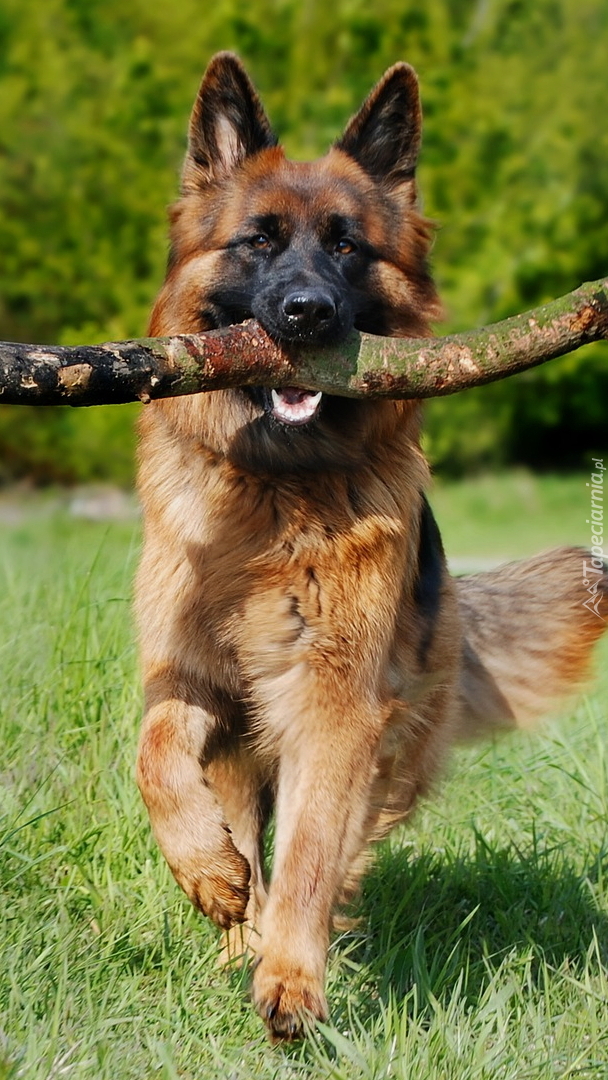 Edytor tapety: Owczarek niemiecki z kijem w pysku