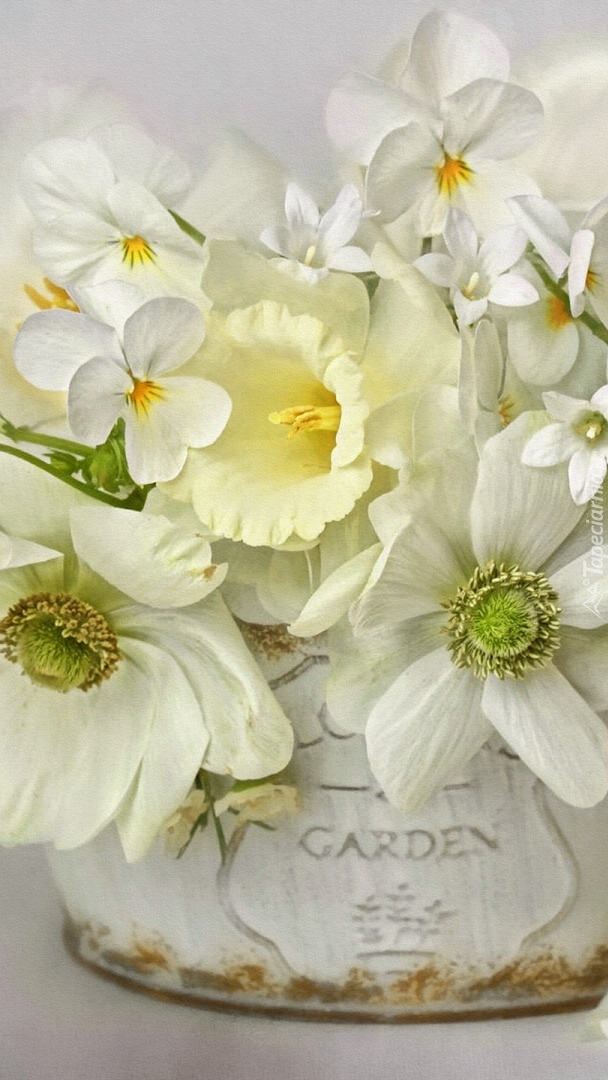 Edytor tapety: Białe kwiaty w doniczce