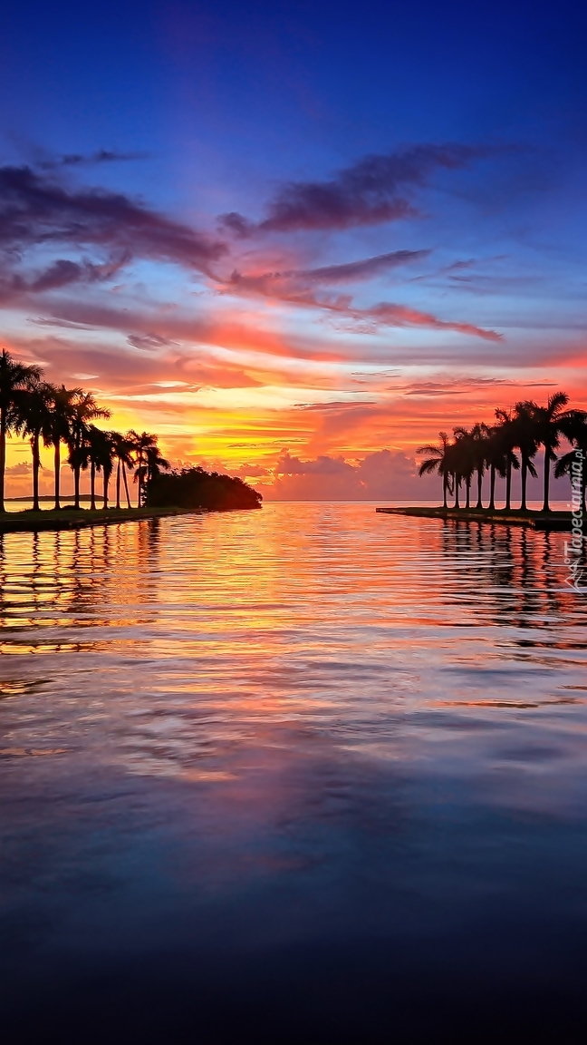 Edytor tapety: Palmy nad morzem w zachodzącym słońcu