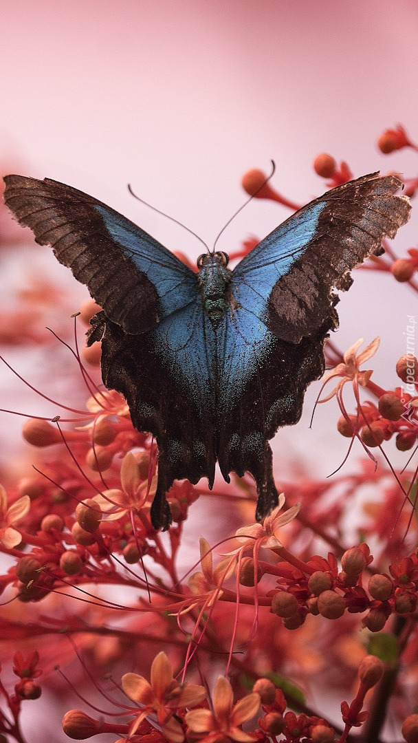 Edytor tapety: Czarno-niebieski motyl na kwiatach