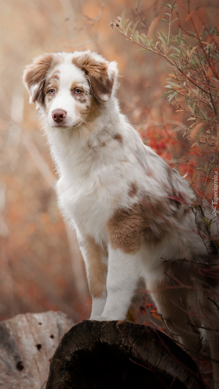 Edytor tapety: Owczarek australijski przy gałązkach