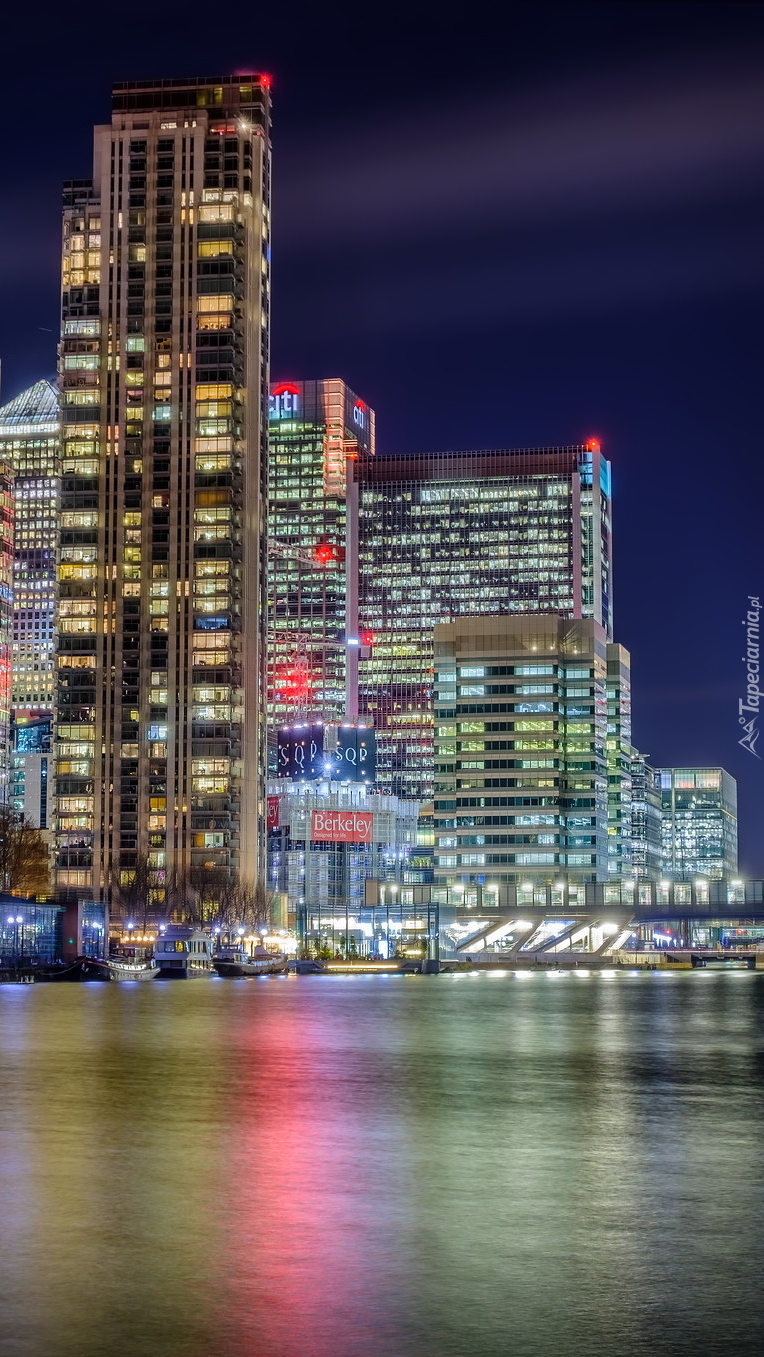 Edytor tapety: Oświetlone wieżowce nad dokiem w Londynie