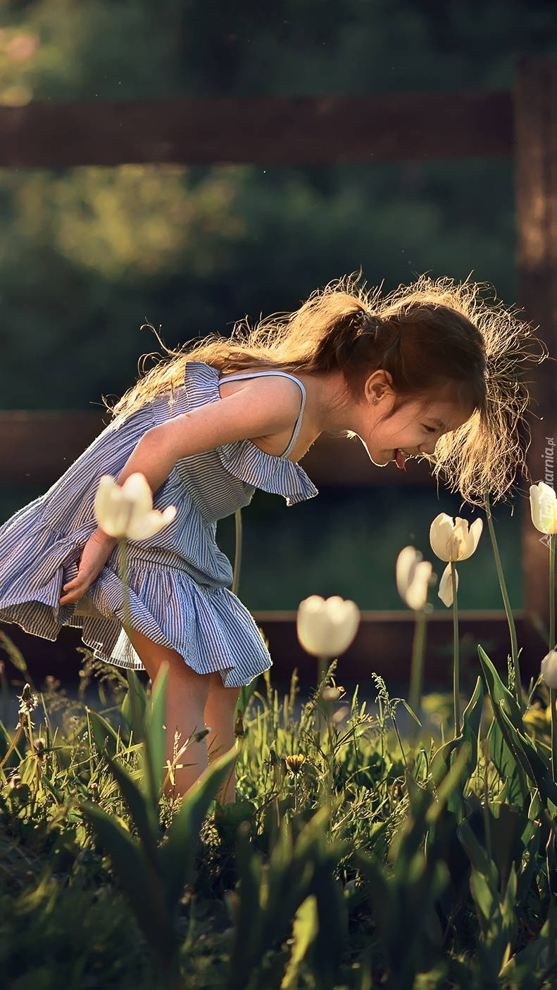 Edytor tapety: Dziewczynka obok białych tulipanów