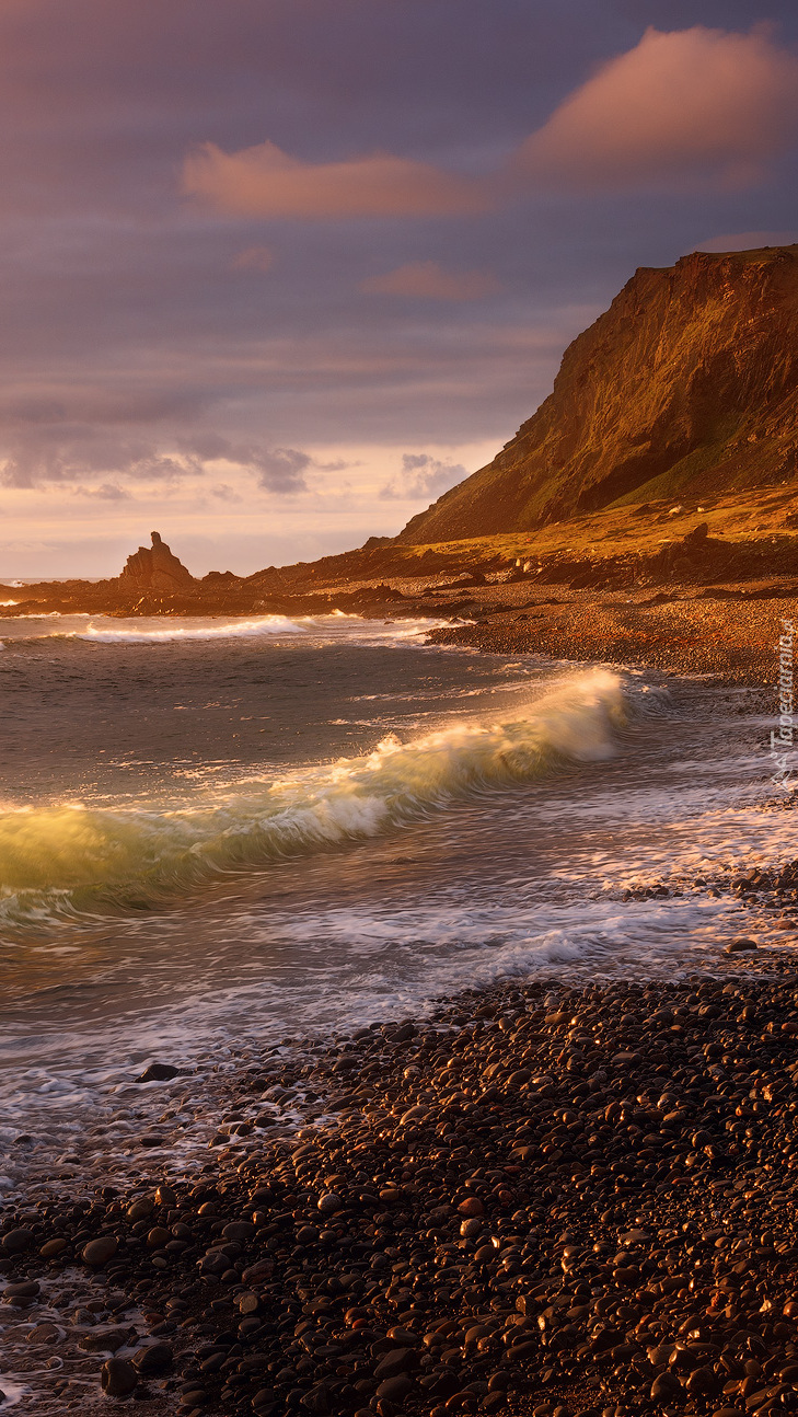 Edytor tapety: Fale na kamienistym wybrzeżu
