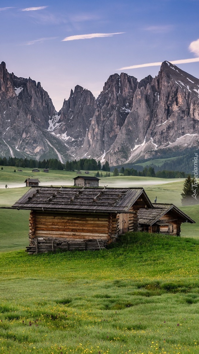 Edytor tapety: Drewniane domki w górach