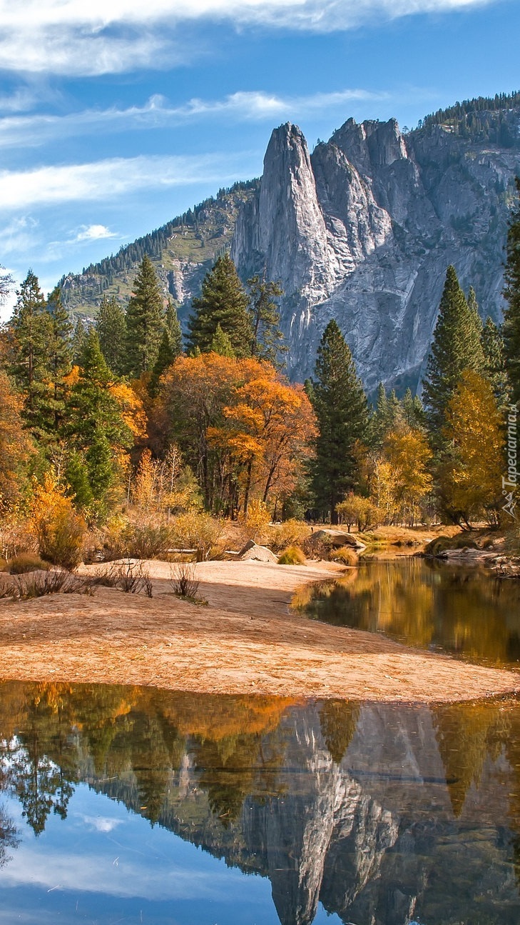Edytor tapety: Jesienne drzewa nad górskim jeziorem