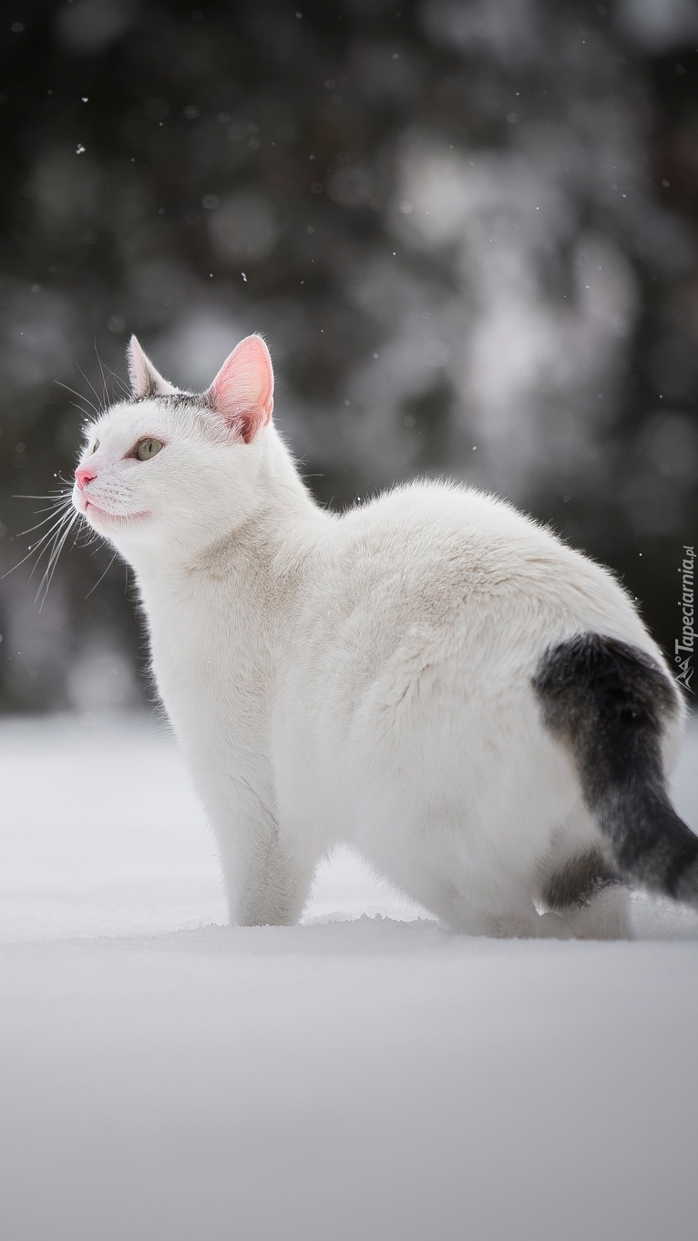 Edytor tapety: Biały kotek z ciemnym ogonem