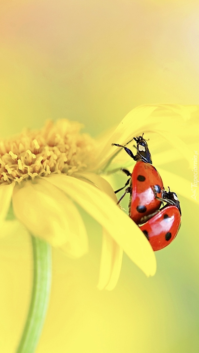 Edytor tapety: Dwie biedronki na żółtym kwiatku