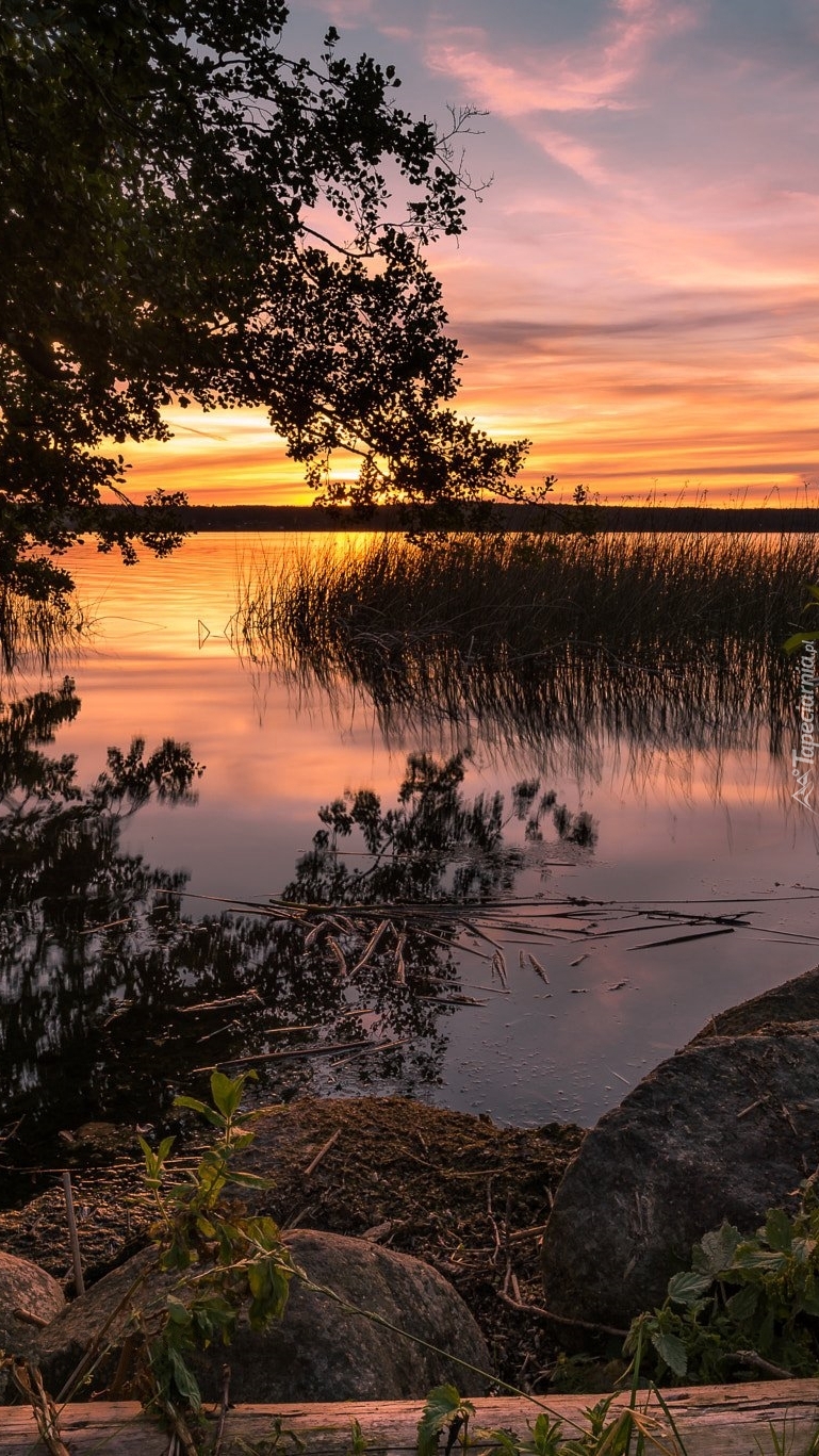 Edytor tapety: Zachód słońca nad jeziorem