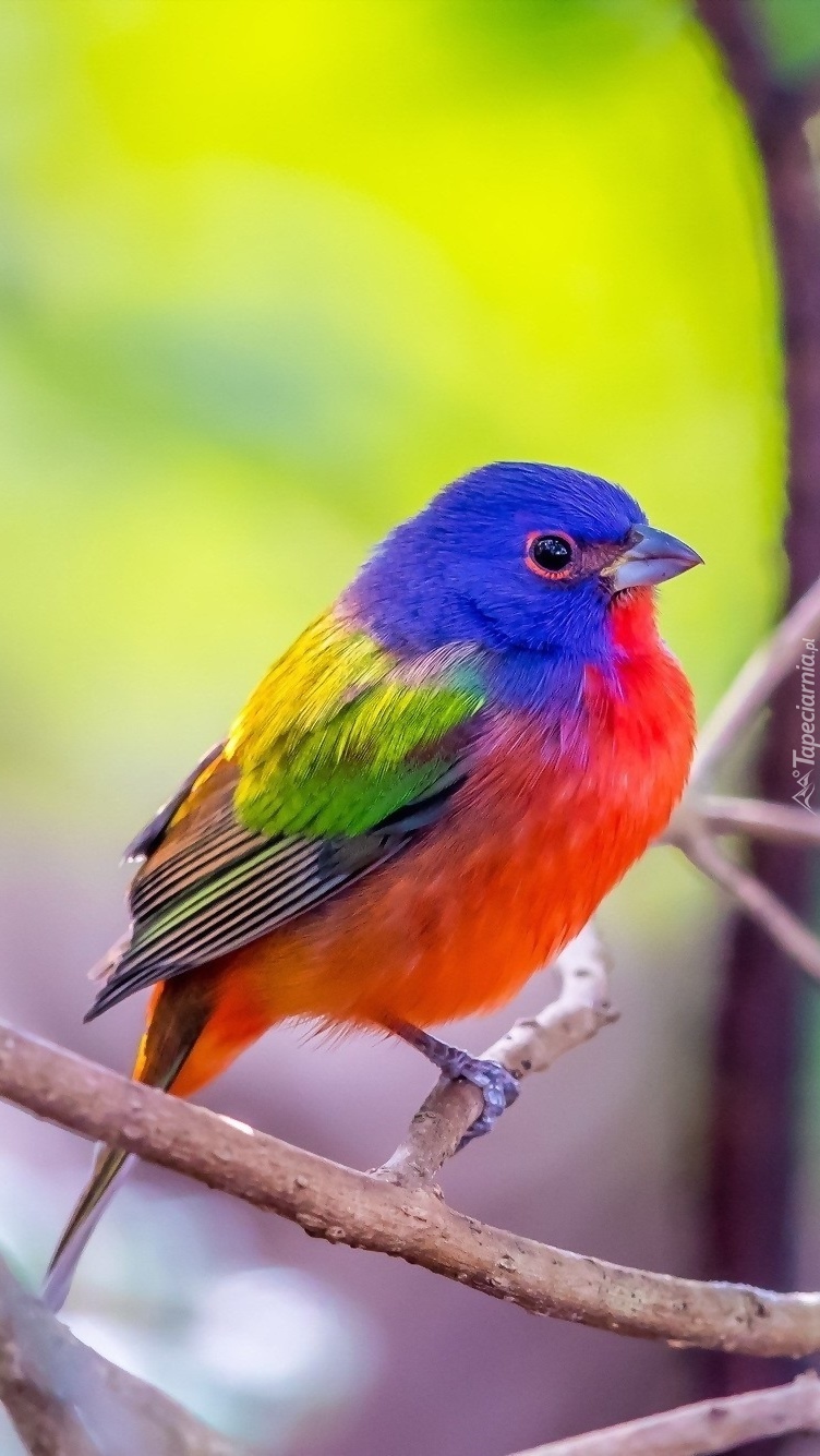 Edytor tapety: Kolorowy ptaszek na gałązce