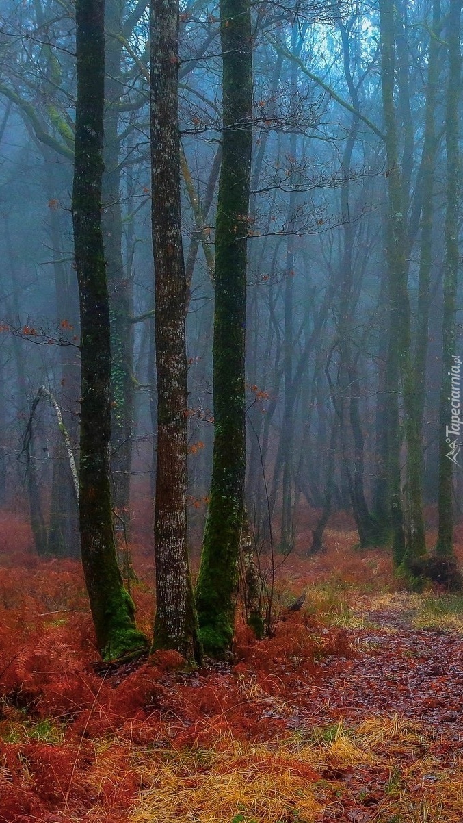 Edytor tapety: Bezlistne drzewa we mgle