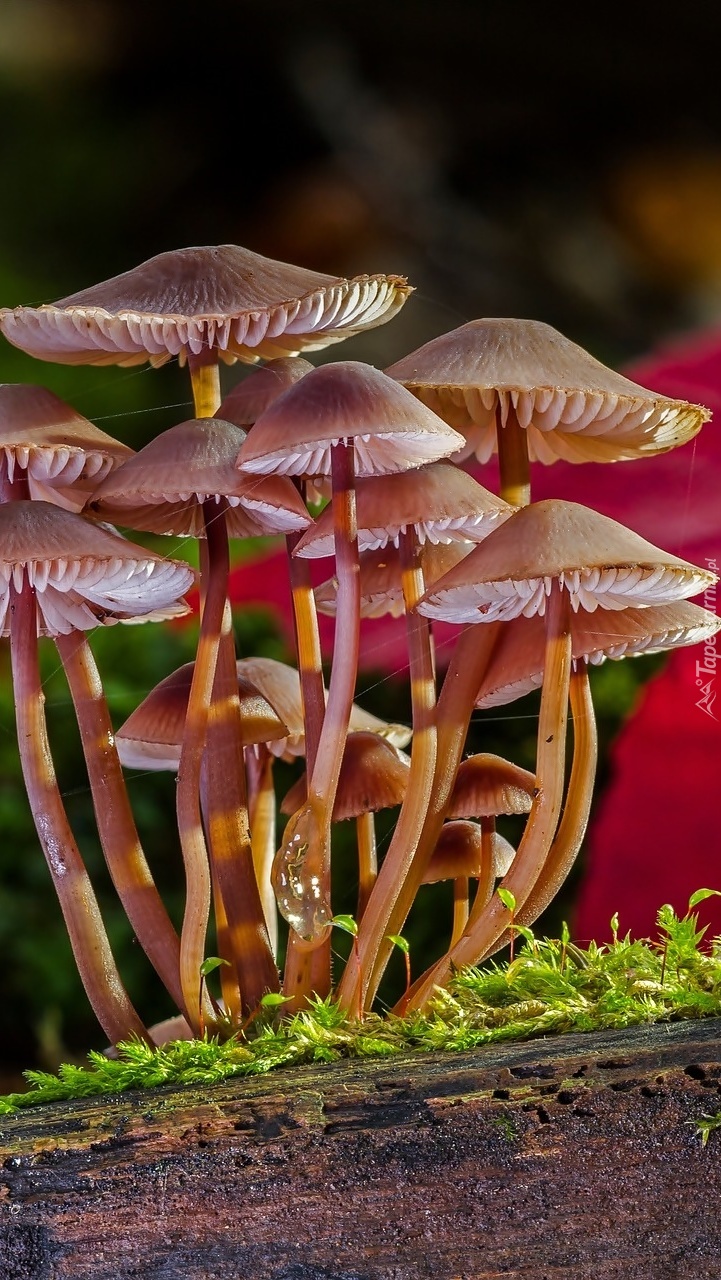 Edytor tapety: Grzyby na mchu i drewnie