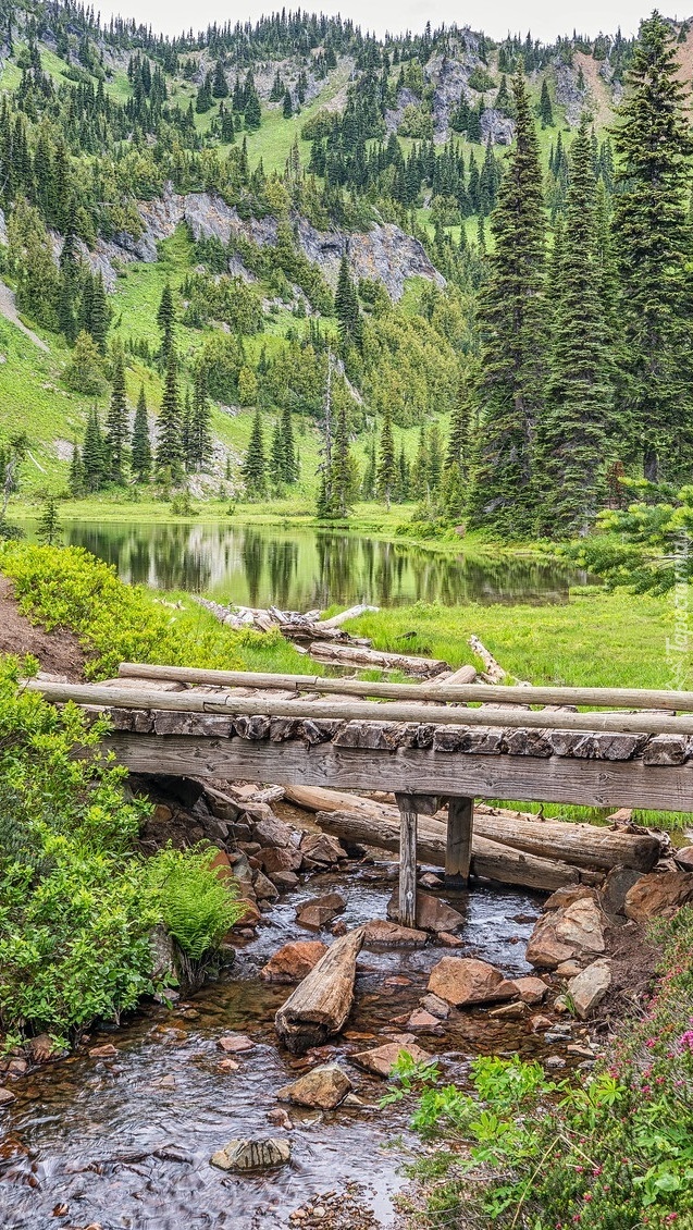Edytor tapety: Kładka nad rzeką w górach
