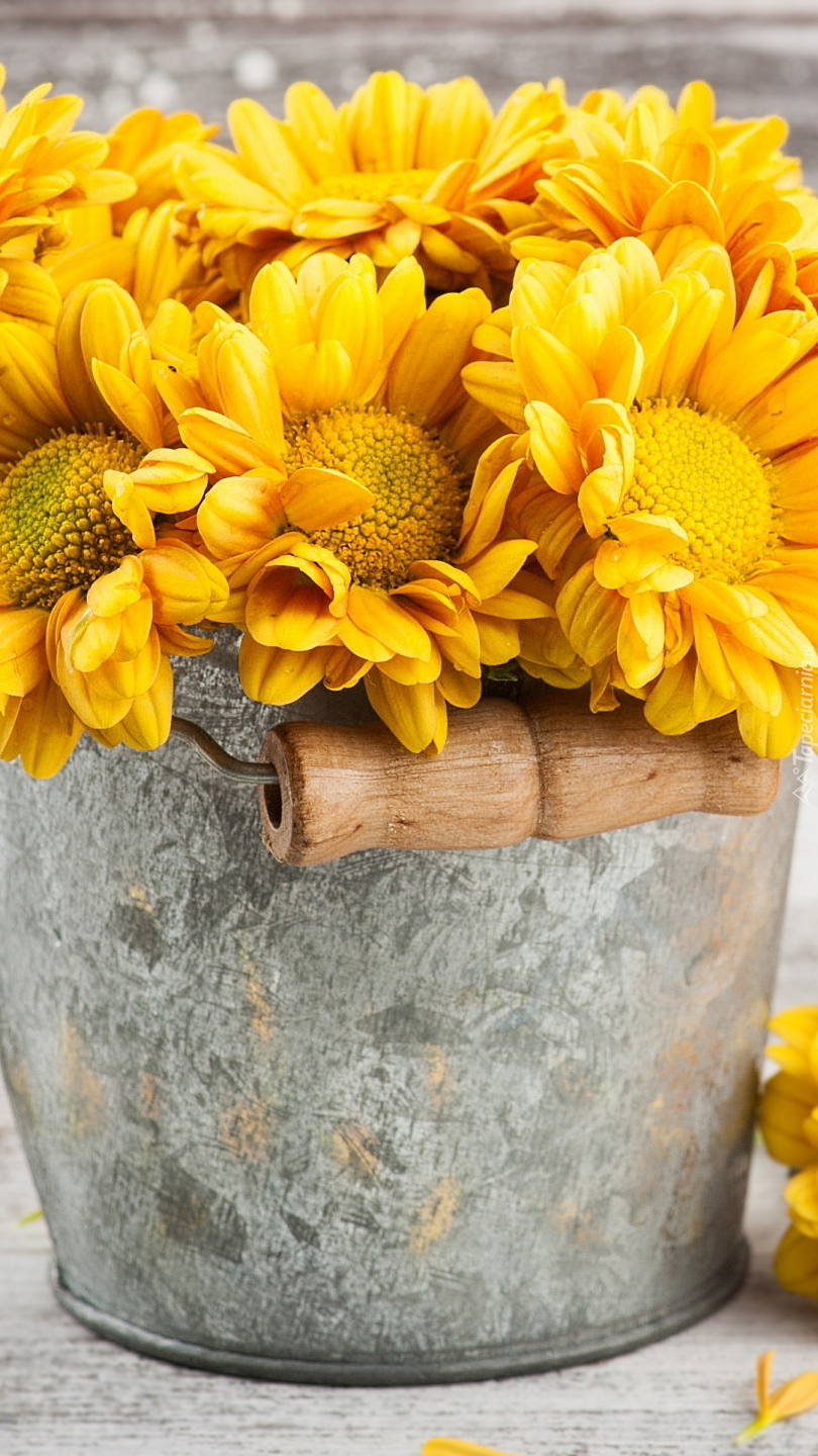 Edytor tapety: Żółte chryzantemy w wiaderku