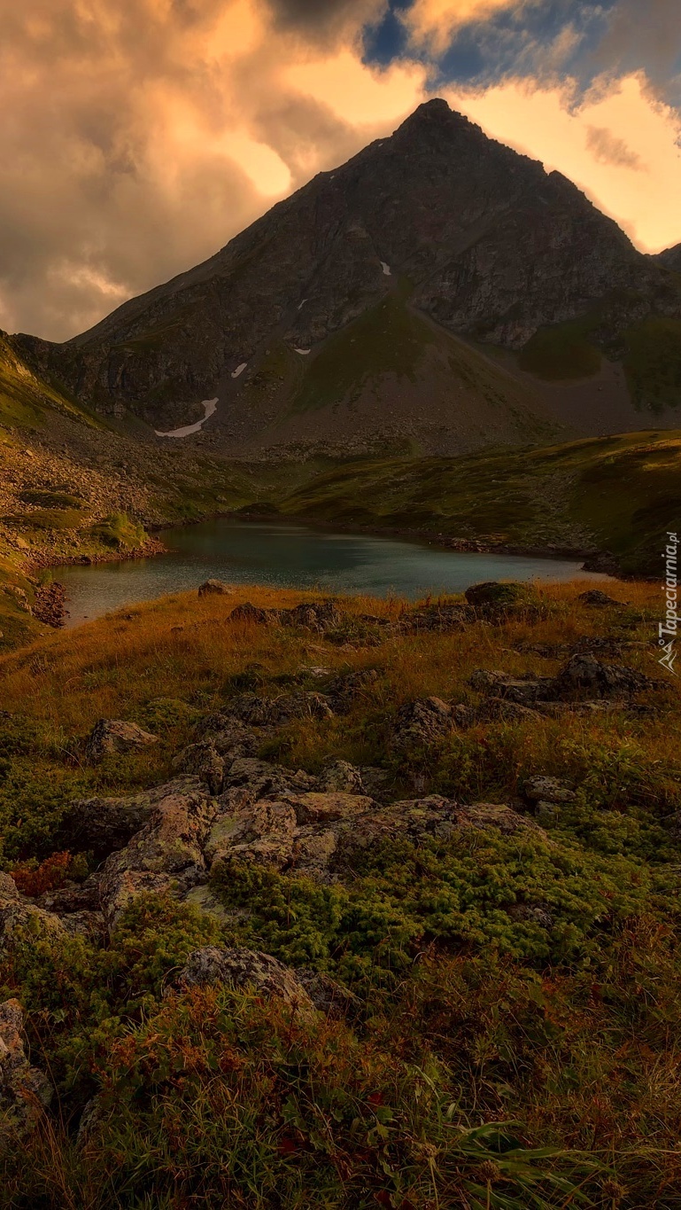 Edytor tapety: Jezioro w dolinie gór Kaukazu