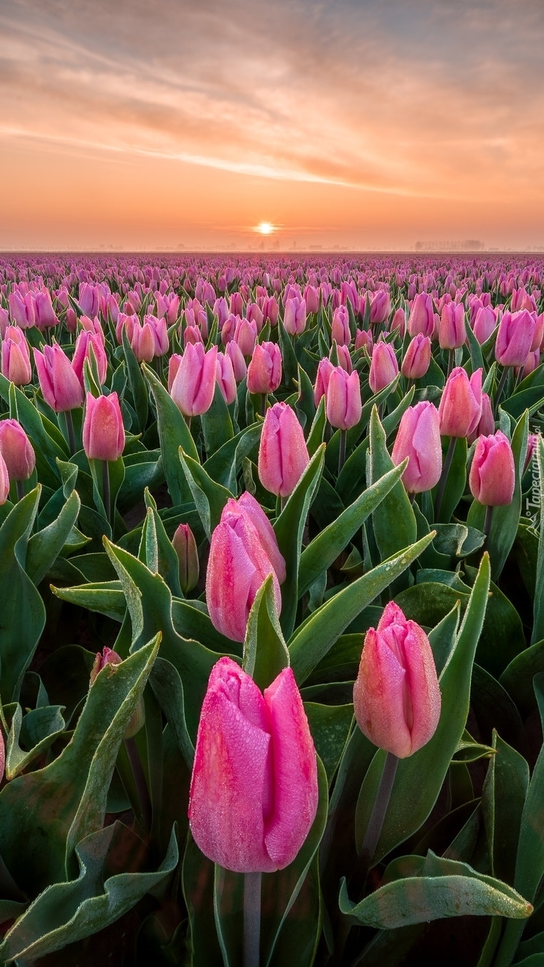 Edytor tapety: Poranek nad plantacją tulipanów