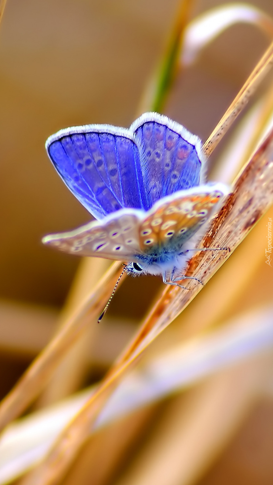 Edytor tapety: Modraszek ikar na źdźble trawy