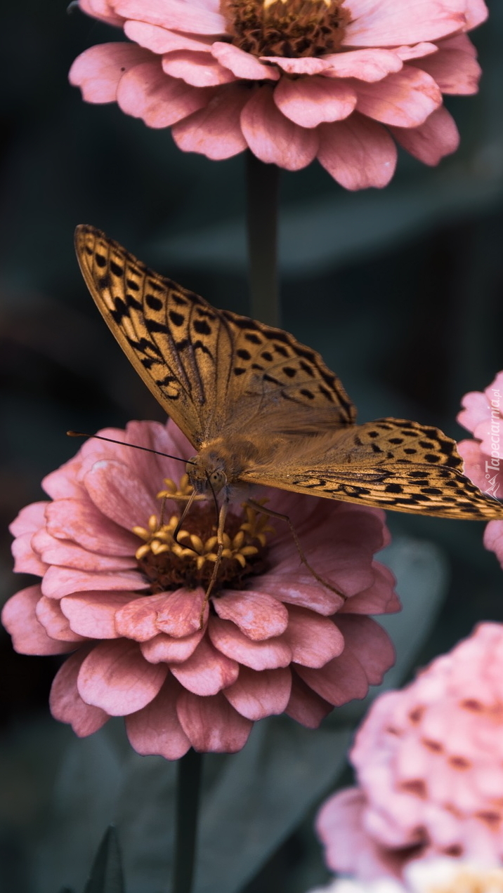 Edytor tapety: Dostojka malinowiec na różowej cynii