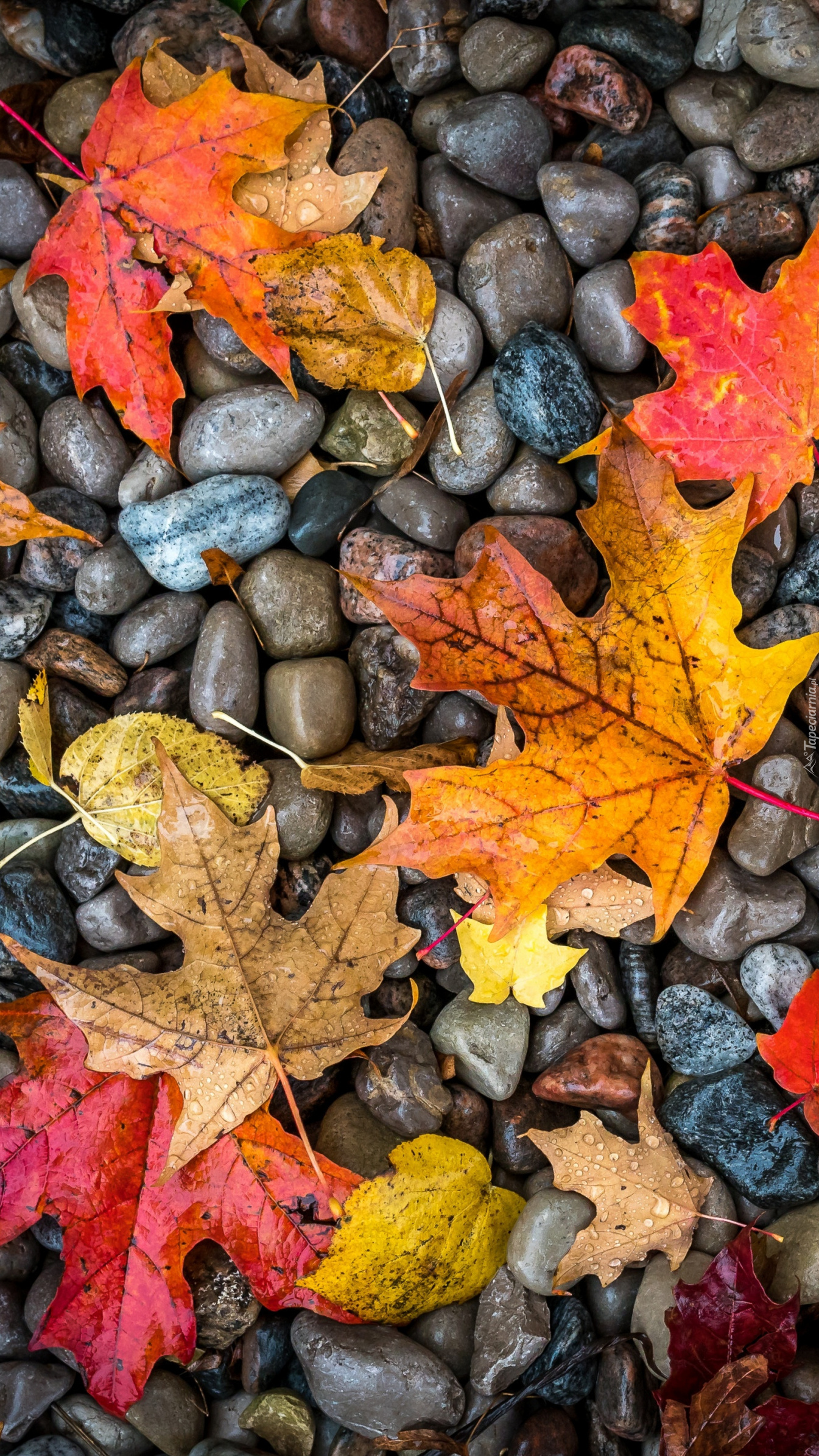 Edytor tapety: Kolorowe liście klonu na kamykach
