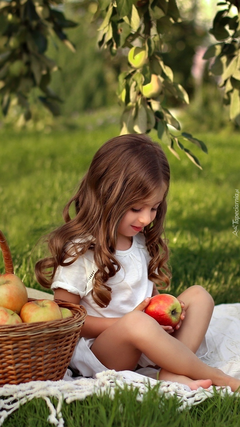 Edytor tapety: Dziewczynka z jabłkiem na kocyku