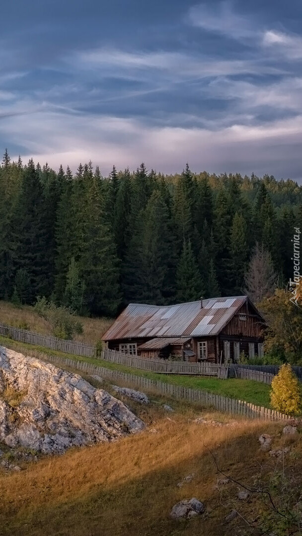 Edytor tapety: Drewniany dom pod lasem