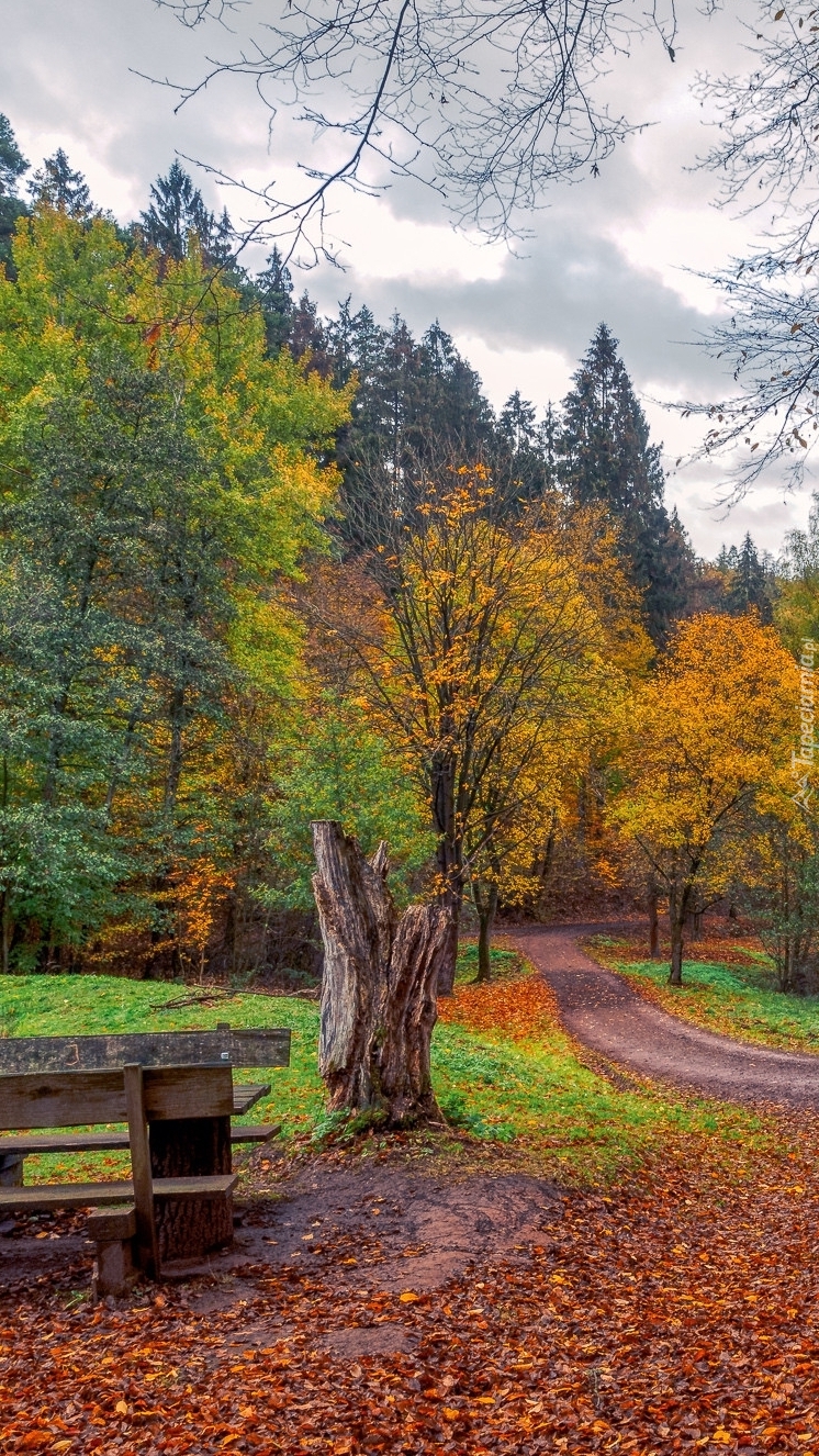 Edytor tapety: Ławka w jesiennym parku