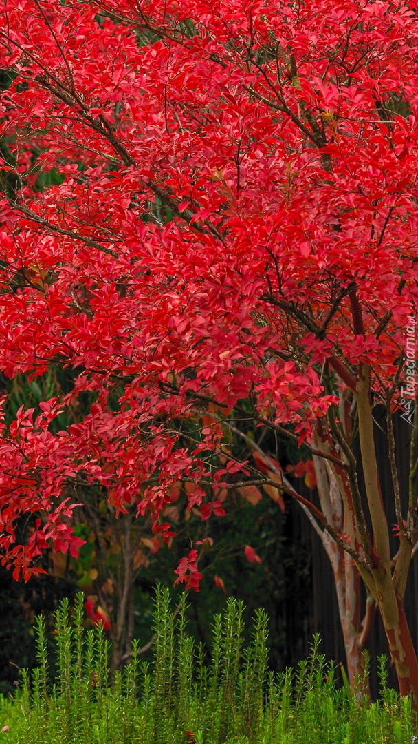 Edytor tapety: Drzewo z czerwonymi liśćmi