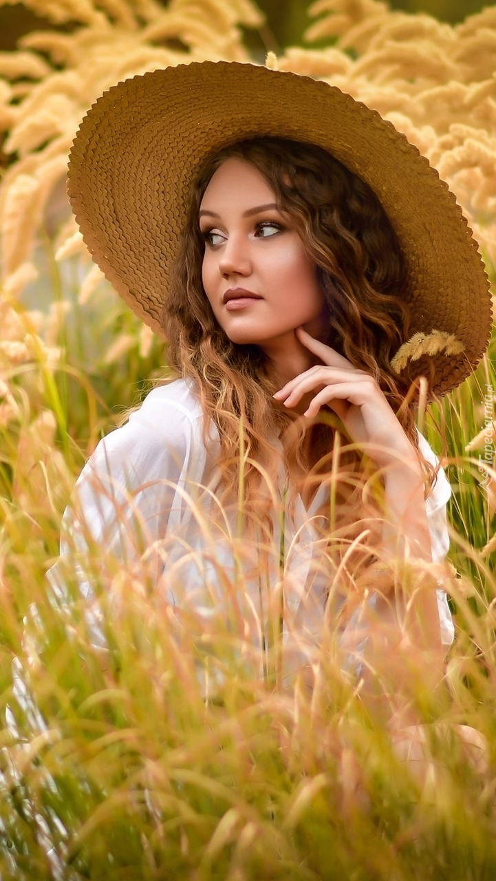 Edytor tapety: Zapatrzona kobieta w kapeluszu