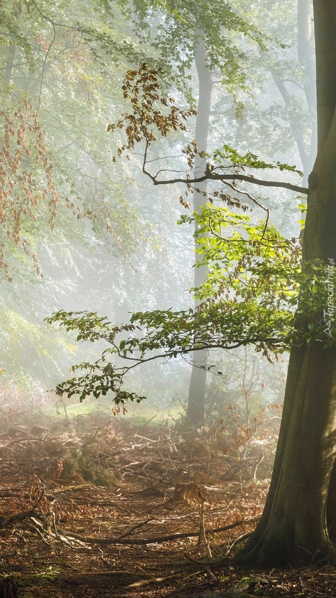 Edytor tapety: Mgła o poranku lesie