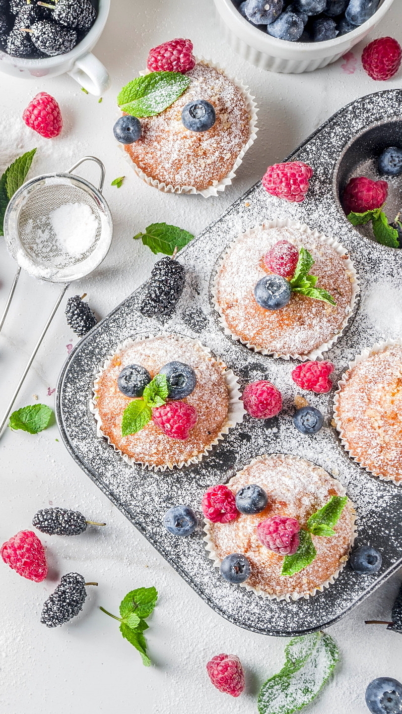 Edytor tapety: Owocowe muffinki posypane cukrem pudrem
