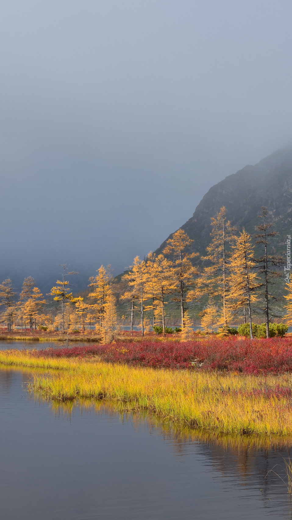 Edytor tapety: Kolorowe rośliny nad jeziorem Jack London