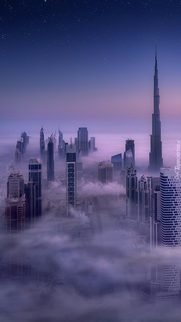 Edytor tapety: Dubaj z drapaczami chmur we mgle