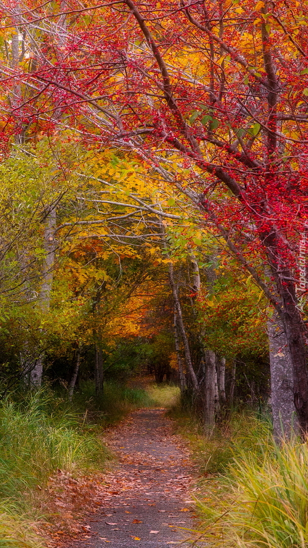 Edytor tapety: Ścieżka między kolorowymi drzewami