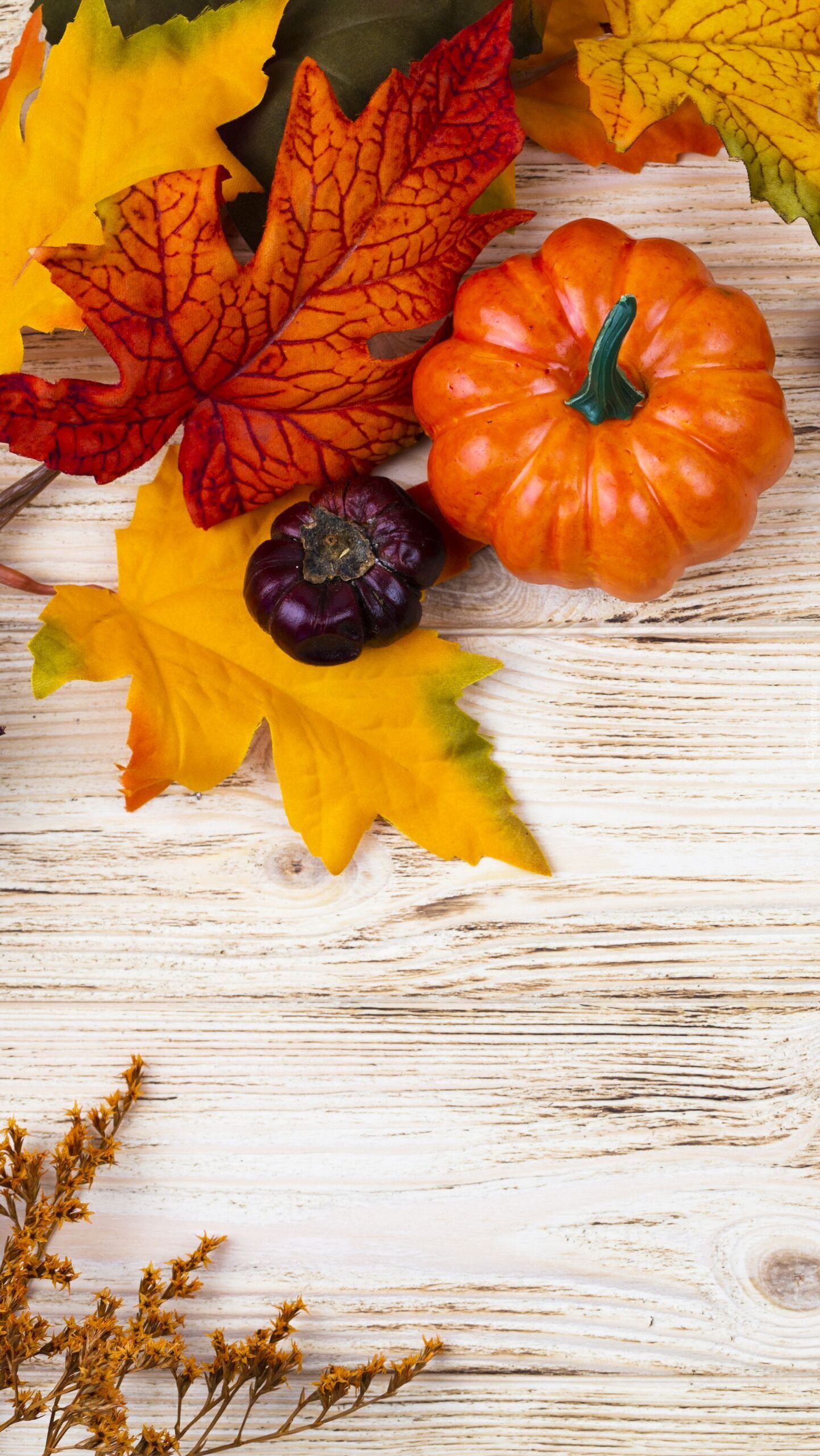 Edytor tapety: Dynie obok suchych liści