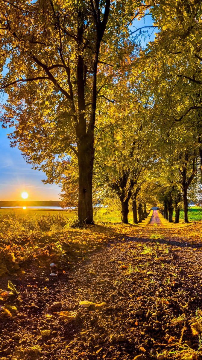 Edytor tapety: Jesienne drzewa wzdłuż drogi