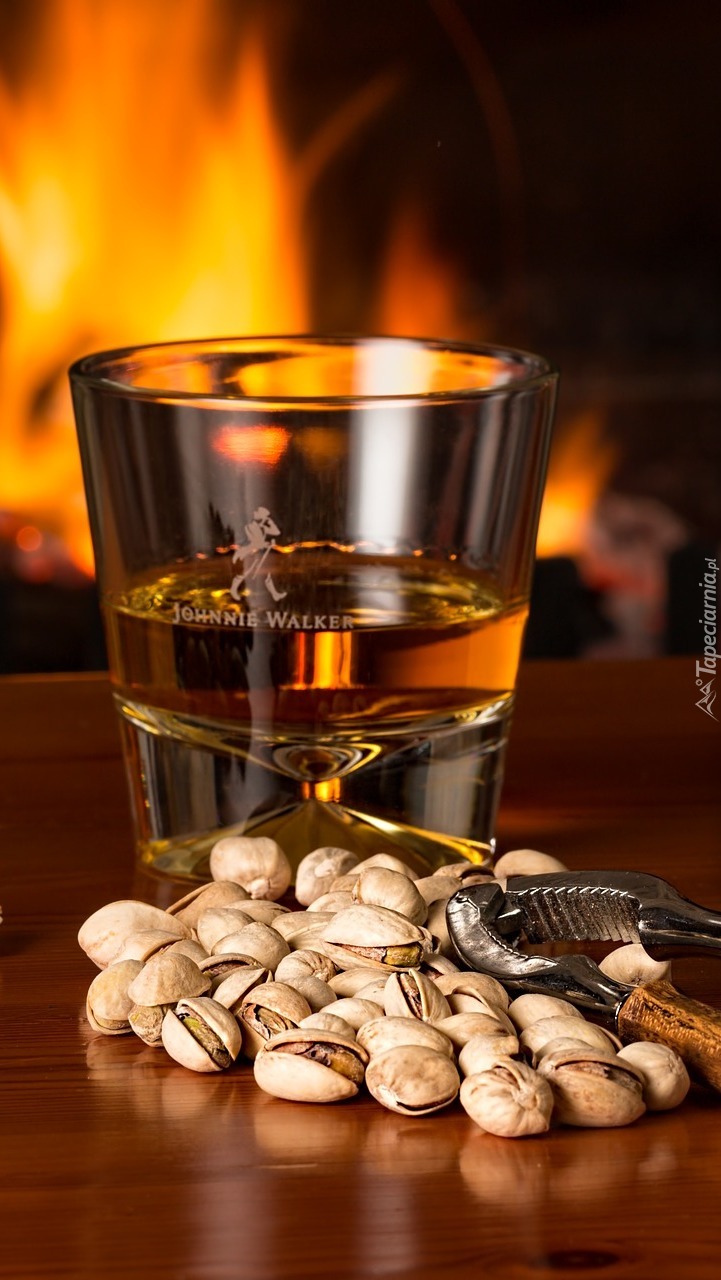 Edytor tapety: Szklanka whisky i pistacje