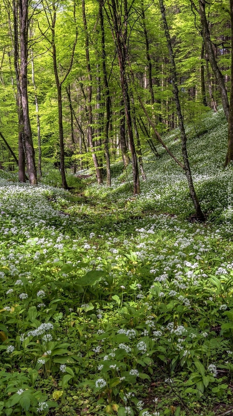 Edytor tapety: Kwiaty czosnku niedźwiedziego w lesie