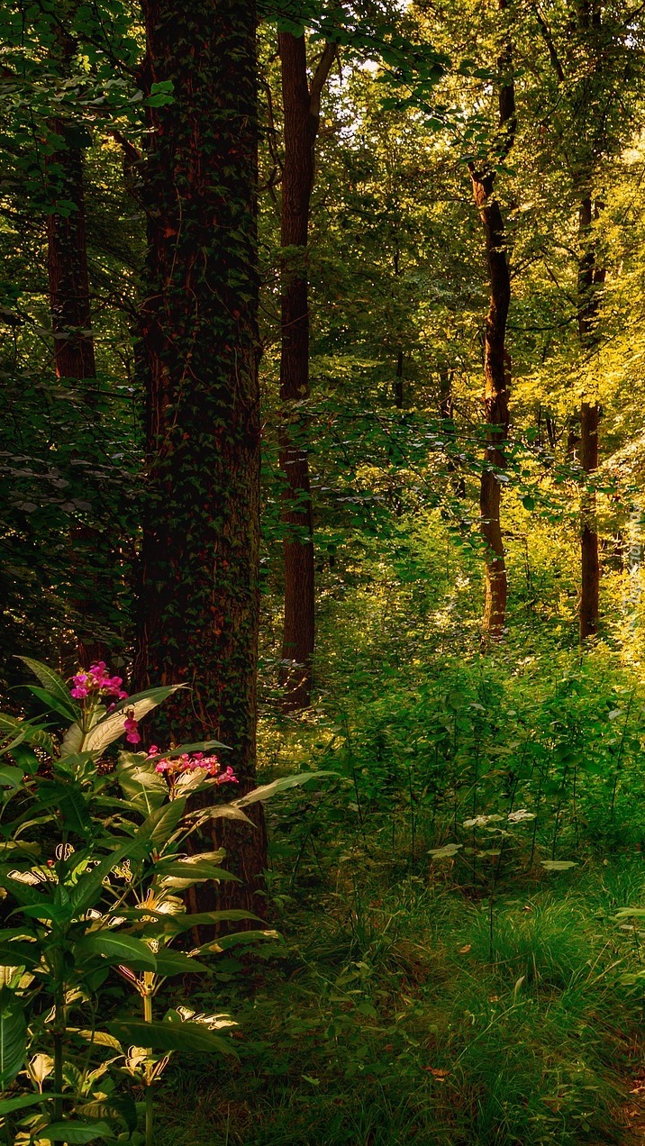 Edytor tapety: Kwiaty pod drzewami w lesie