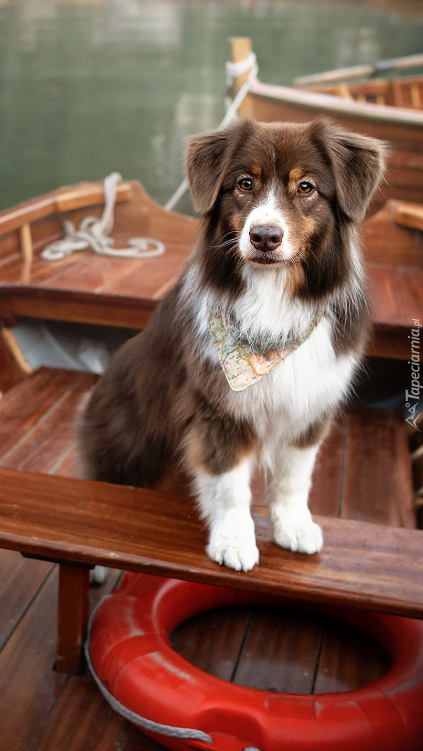 Edytor tapety: Owczarek australijski na łodzi