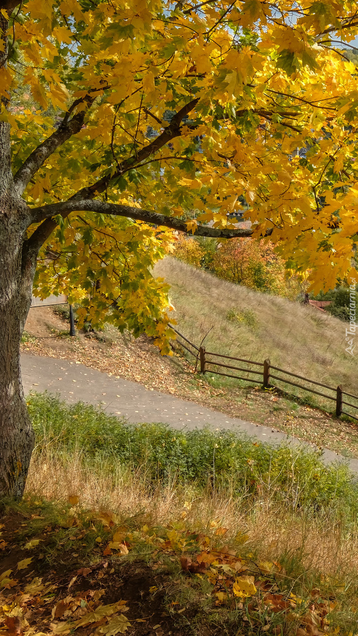 Edytor tapety: Drzewo klonu przy drodze