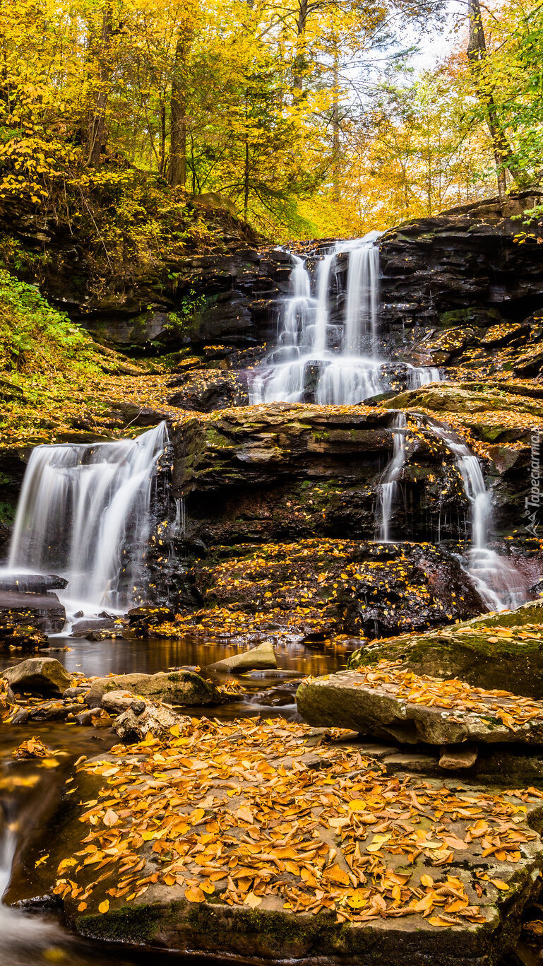 Edytor tapety: Leśny wodospad na skałach