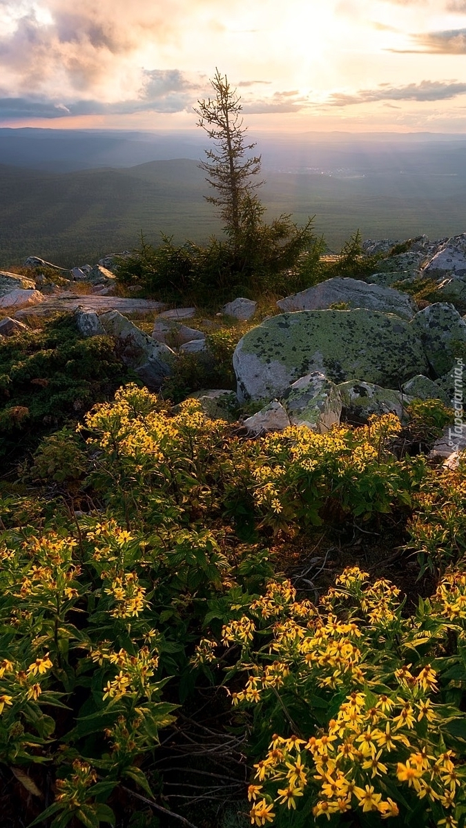 Edytor tapety: Kwiaty wśród skał na wzgórzu