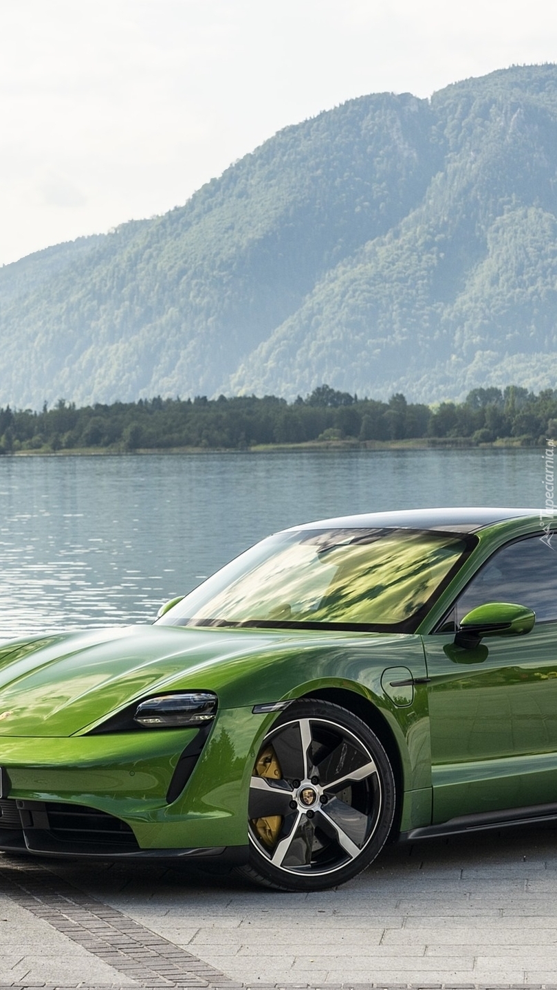 Edytor tapety: Zielone Porsche Taycan Turbo