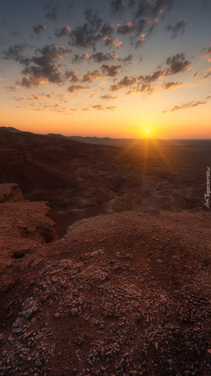 Edytor tapety: Zachód słońca padający na wzgórza