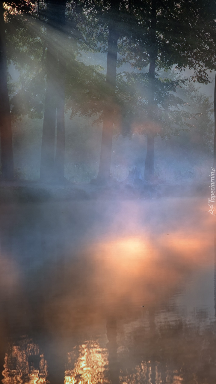 Edytor tapety: Mgła nad leśną rzeką