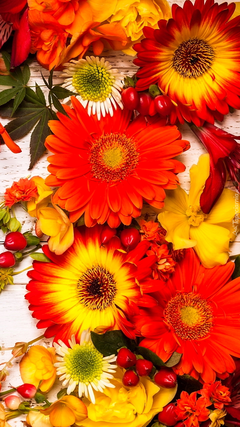 Edytor tapety: Kompozycja z kolorowych kwiatów