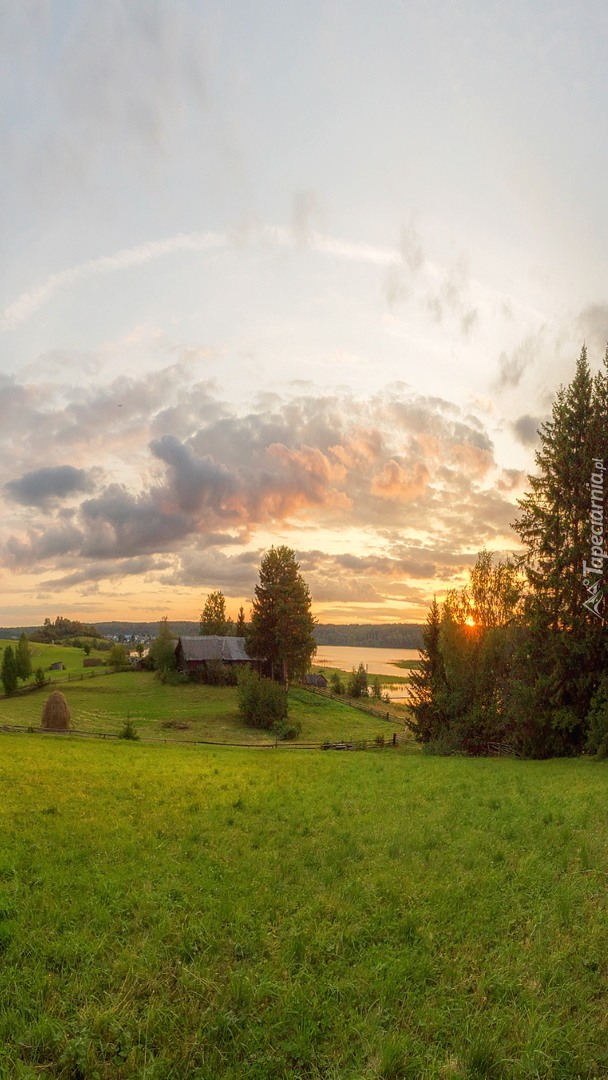 Edytor tapety: Wieś Kienoziero nad jeziorem