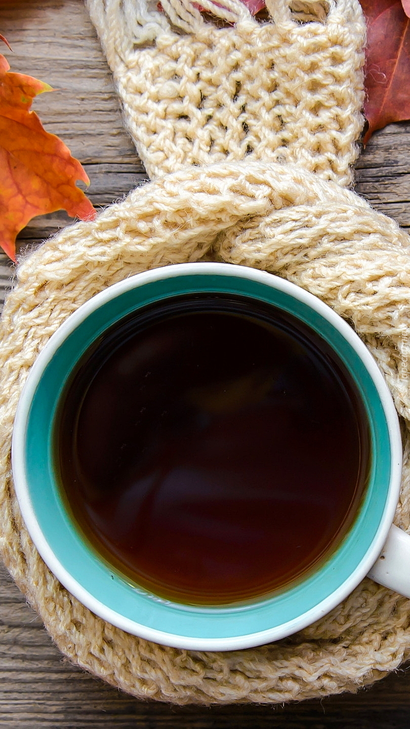 Edytor tapety: Kubek kawy owinięty szalikiem